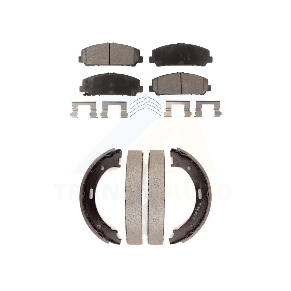 Front Rear Semi-Metallic Brake Pads Parking Shoe Kit For Nissan Titan TITAN