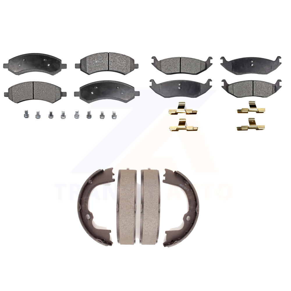 Front Rear Semi-Metallic Brake Pads Parking Shoes Kit For Ram 1500 Dodge Classic