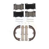 Front Ceramic Brake Pads Rear Parking Shoe Kit For INFINITI Q50 M37 QX70 Q70 M56