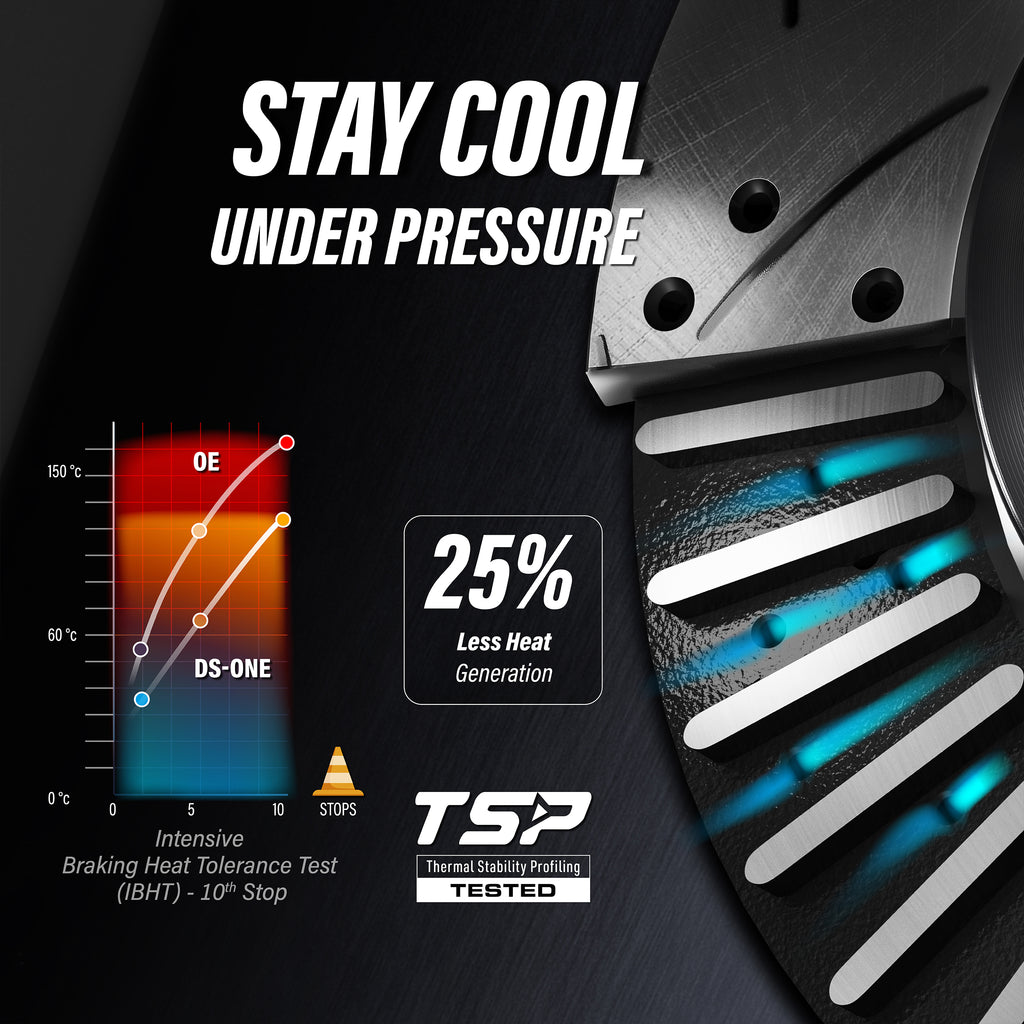Full Description: DS-One offers the ultimate electrophoretic coated performance brake parts on the market. The unique slot and drill disgn enigineered in North America makes our rotors fits any sides of your vehicle. The unmatched braking performance coupled with longer lasting components make our brake the best sellers in every category.