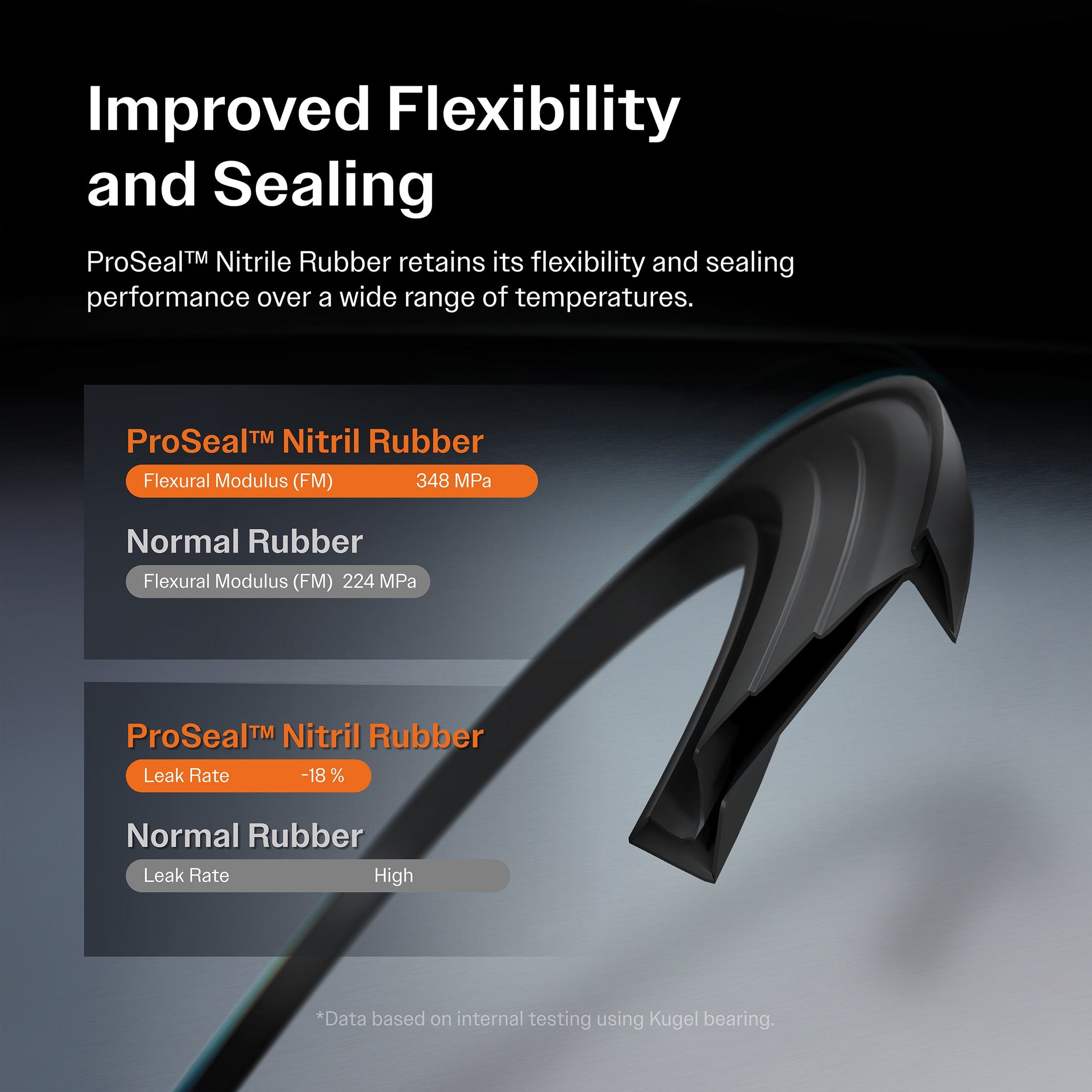 - Exclusive multi-lip seals are made with Nitrile Rubber (NBR) which can successfully function at temperatures of-40°C while resisting contaminants from fluids and debris