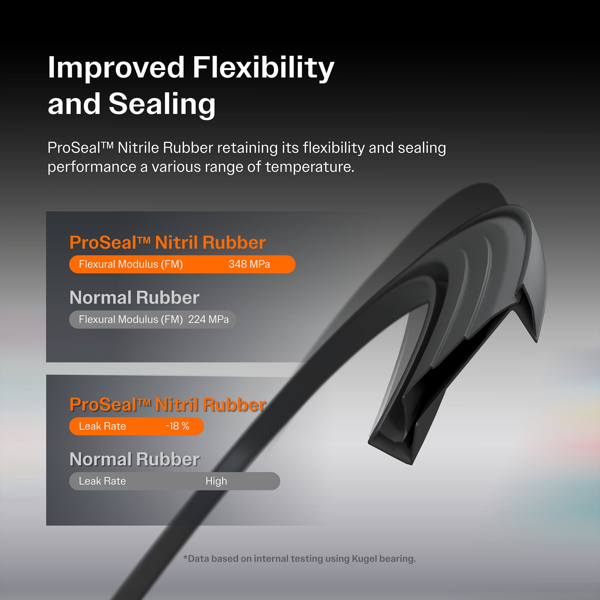 • Exclusive multi-lip seals are made with Nitrile Rubber (NBR) which can successfully function at temperatures of-40°C while resisting contaminants from fluids and debris