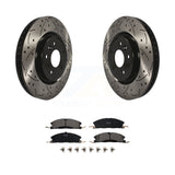 [Front] 2013 Ford Explorer Sport Performance Drilled & Slotted Brake Rotor & Ceramic Pads Kit For Max Braking