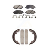 Front Rear Ceramic Brake Pads & Parking Shoes Kit For Jeep Mitsubishi Dodge