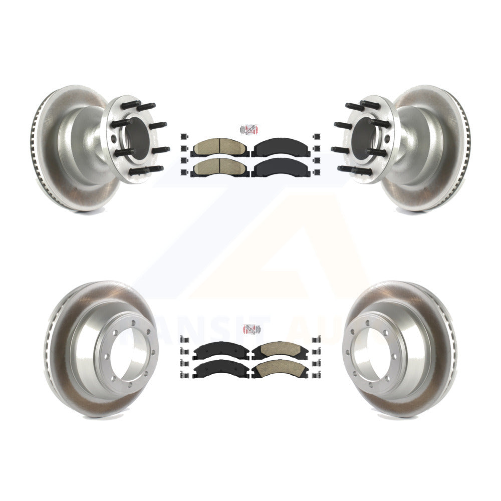 Front Rear Ceramic Pad Coated Disc Brake Rotor Hub Kit For Ford E-450 Super Duty