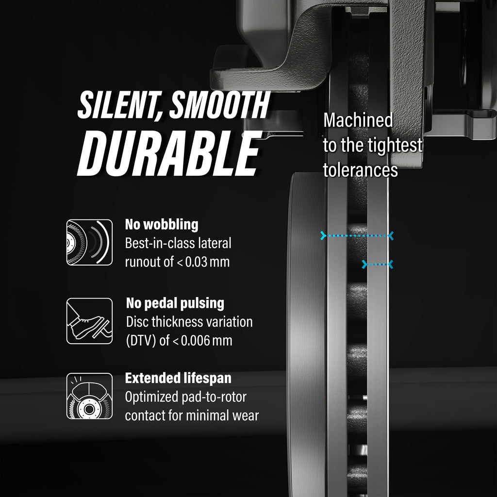 • Exclusive G3000 heat-flowed castings steel give our rotors the ideal balance between tensile and hardness and provide consistent wear, long life, and quiet operation