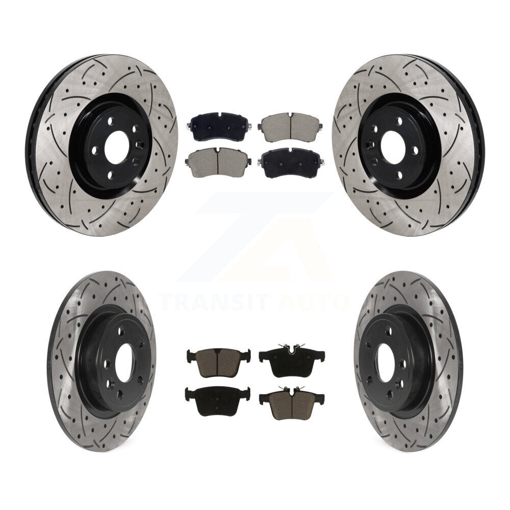 Front Rear Coated Drill Slot Disc Brake Rotors Ceramic Pad Kit For Jaguar E-Pace