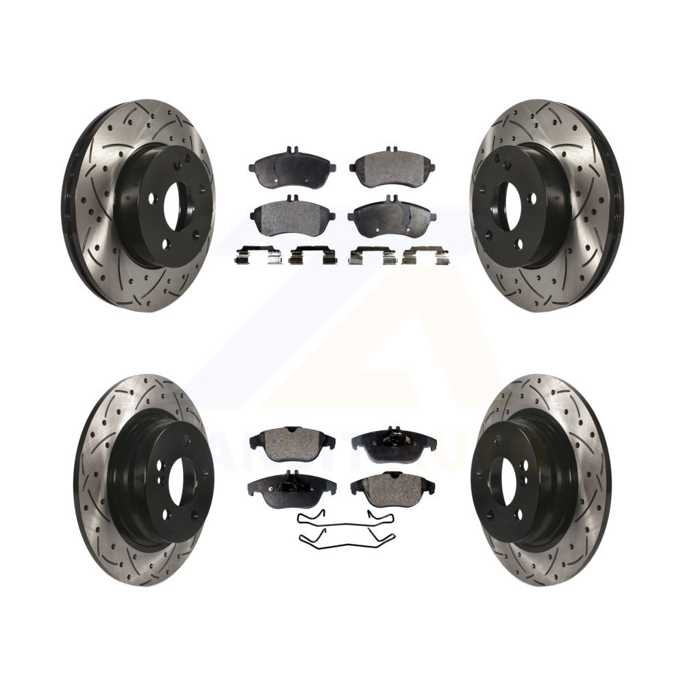 Front Rear Drilled Slot Brake Rotors Ceramic Pad Kit For Mercedes-Benz C300 C250