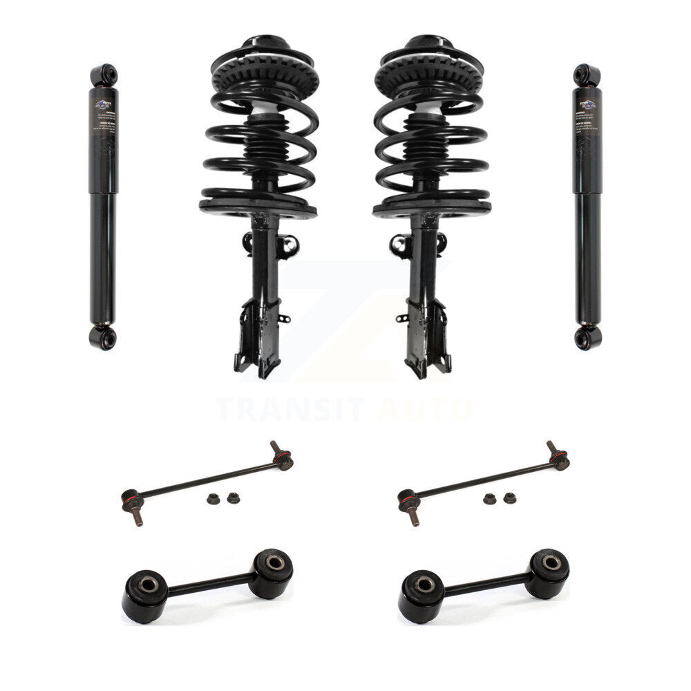 • Kit Includes: 2x Front Unity Automotive Suspension Strut and Coil Spring Assembly (Both Side) + 2x Front TOR Suspension Stabilizer Bar Link Kit (Both Side) + 2x Rear TMC Shock Absorber (Both Side) + 2x Rear TOR Suspension Stabilizer Bar Link Kit (Bot
