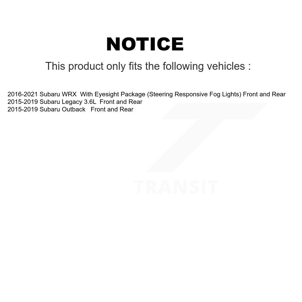 | 2017 | Subaru | WRX | All | With Eyesight Package (Steering Responsive Fog Lights) | All | All | All | All |