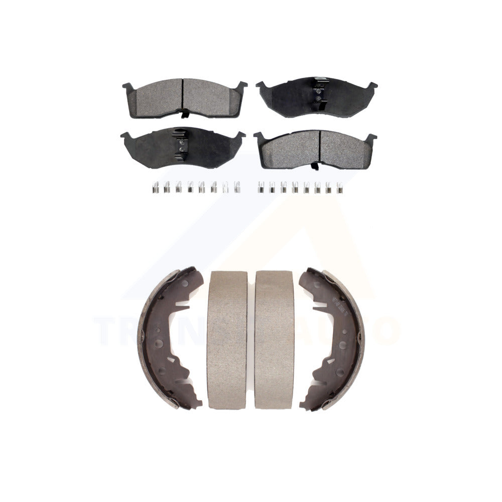 Front Rear Semi-Metallic Brake Pads Drum Shoe Kit For Dodge Grand Caravan Town &