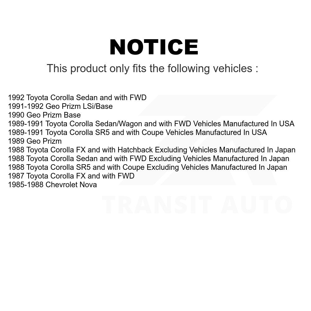 1985 1986 1987 1988 1989 1990 1991 1992 Chevrolet Geo Toyota Chevy TRD Corolla Nova Prizm Base FX FWD Hatchback LSi Sedan Wagon SR5 Coupe