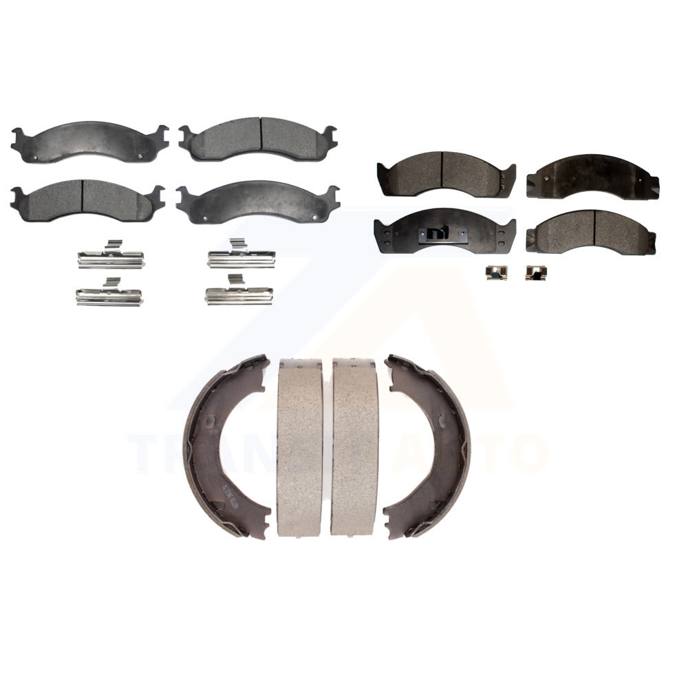 Front Rear Semi-Metallic Brake Pads & Parking Shoe Kit For Ford E-450 Super Duty