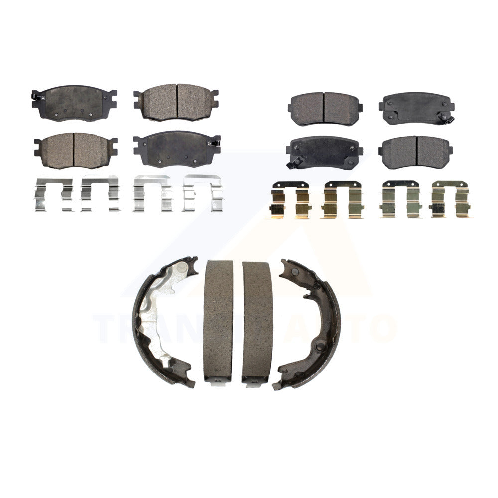 Front Rear Semi-Metallic Brake Pads Parking Shoes Kit For Hyundai Accent Kia Rio