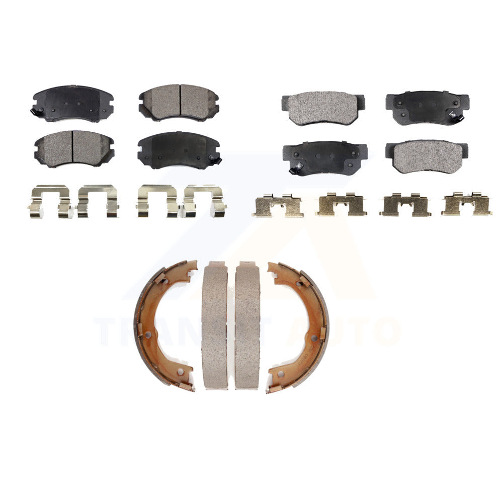Front Rear Semi-Metallic Brake Pads Parking Shoe Kit For 2006-2009 Hyundai Azera