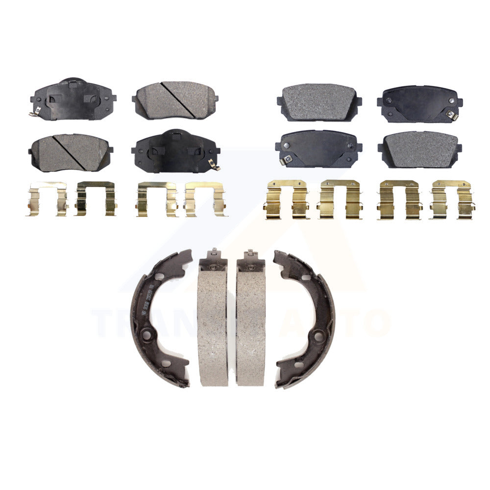 Front Rear Semi-Metallic Brake Pads And Parking Shoe Kit For 2007-2010 Kia Rondo