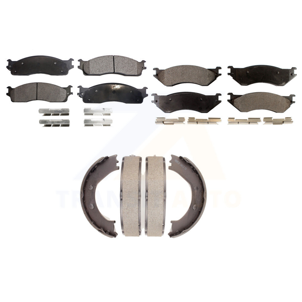 Front Rear Semi-Metallic Brake Pads And Parking Shoes Kit For Dodge Ram 1500