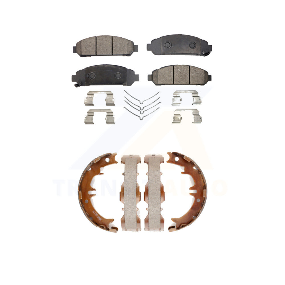 Front Rear Semi-Metallic Brake Pads Parking Shoe Kit For 09-16 Toyota Venza