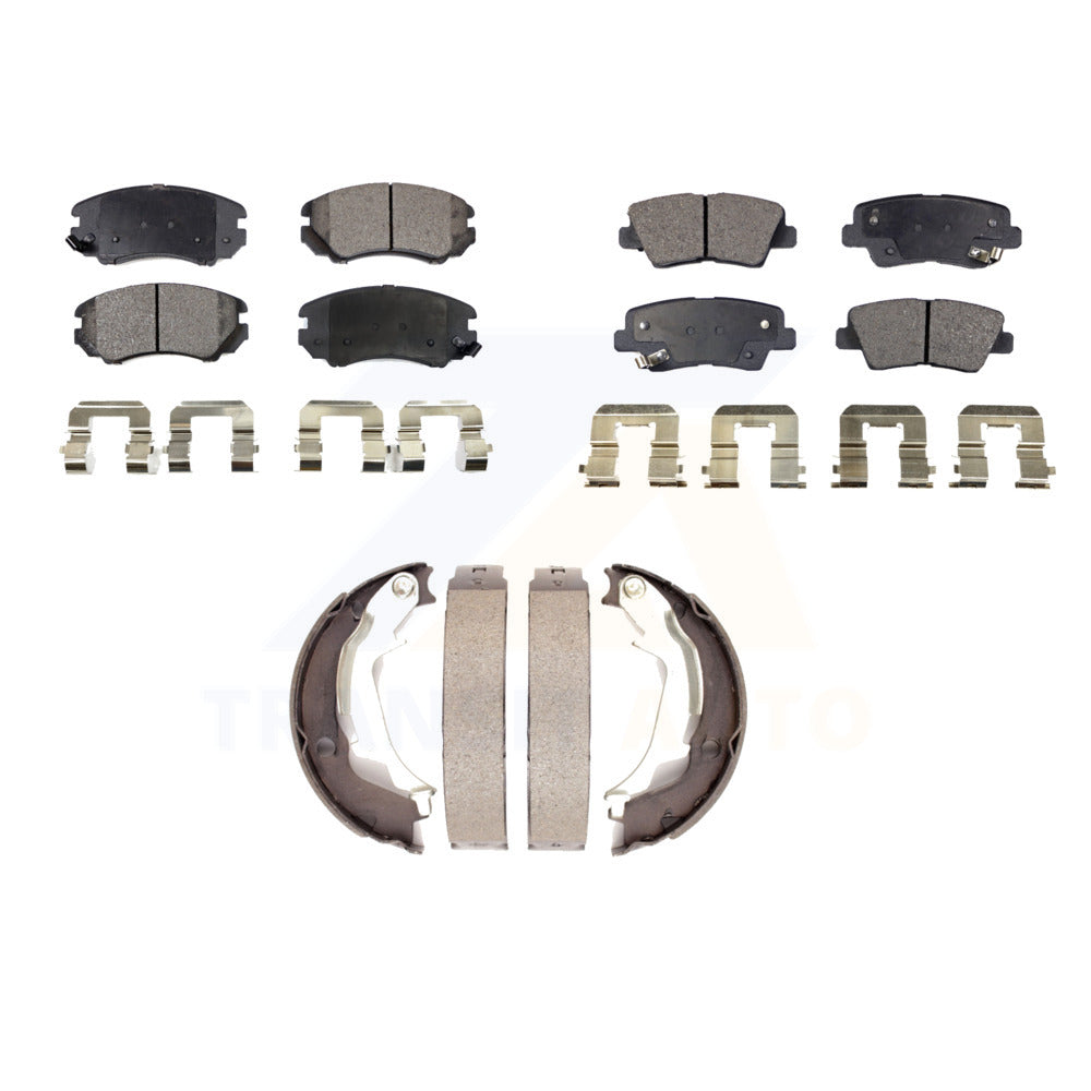 Front Rear Semi-Metallic Brake Pads And Parking Shoes Kit For 2010-2013 Kia Soul