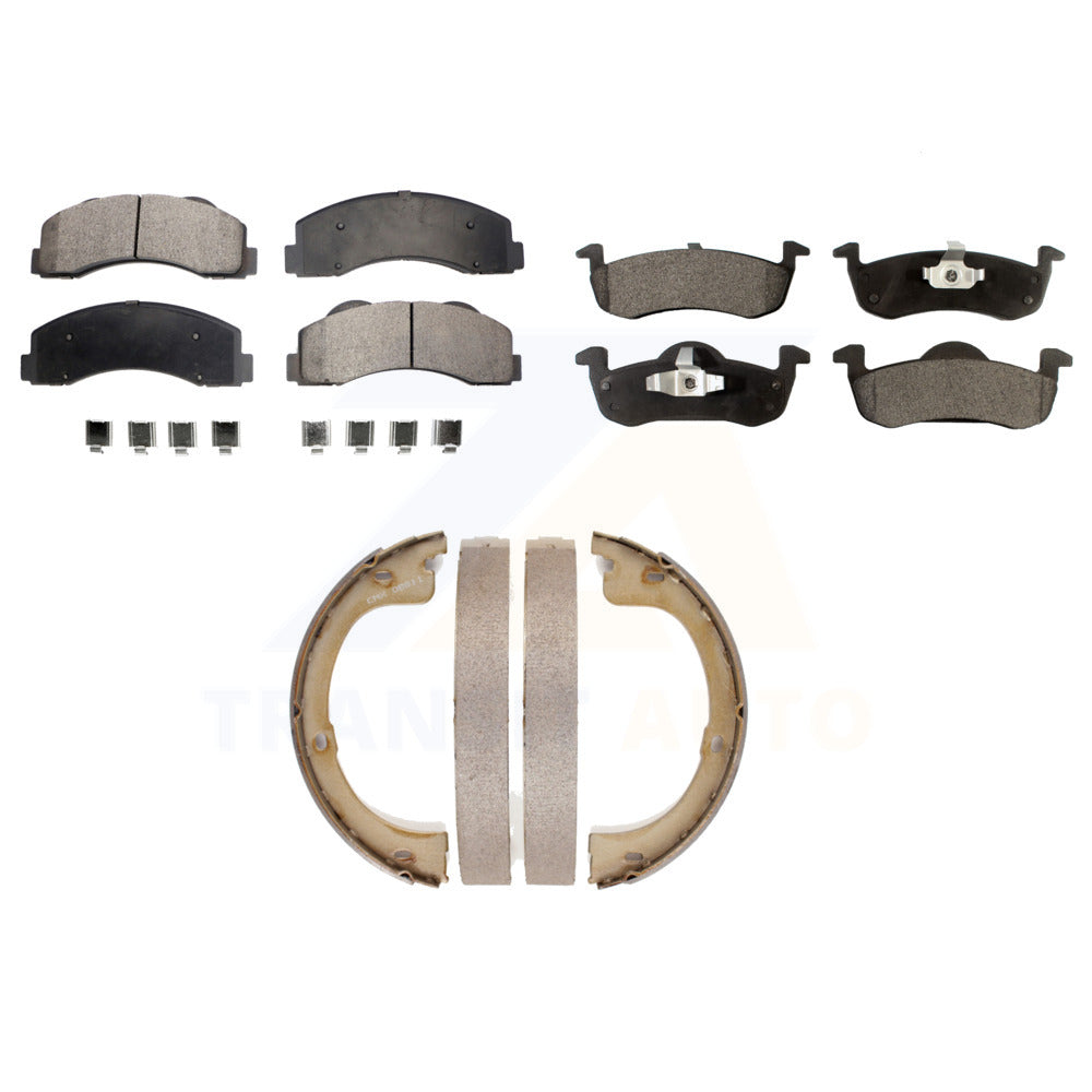 Front Rear Semi-Metallic Brake Pads Parking Shoe Kit For Ford Expedition Lincoln