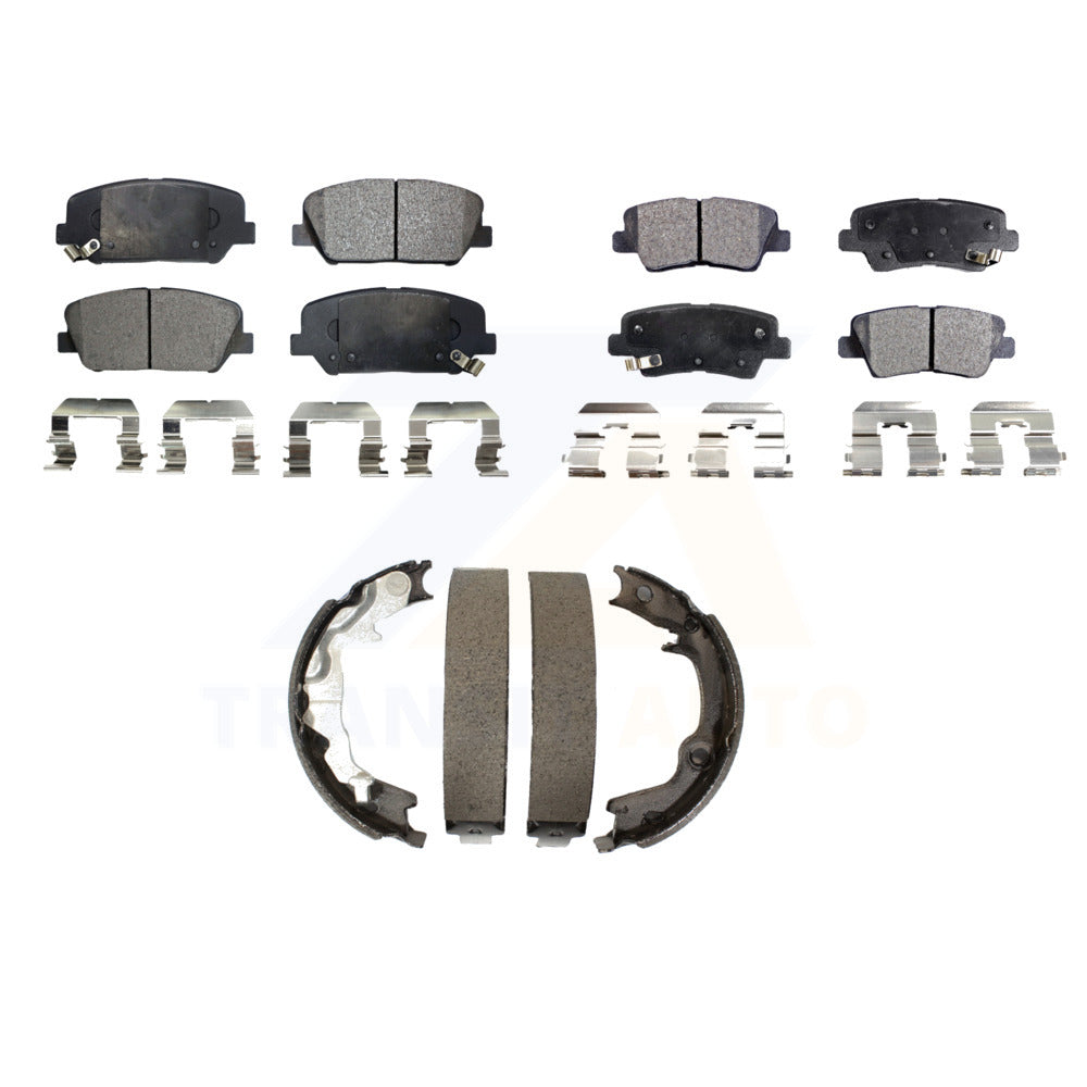 Front Rear Semi-Metallic Brake Pads Parking Shoes Kit For 2014 Kia Forte Koup SX