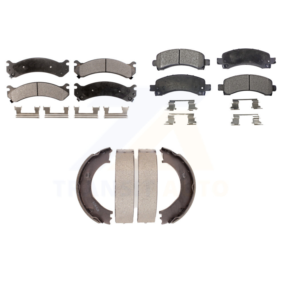Front Rear Semi-Metallic Brake Pads Parking Shoes Kit For Chevrolet Express 3500