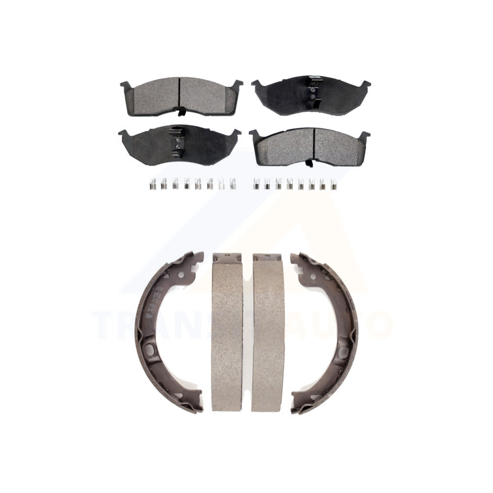 Front Rear Semi-Metallic Brake Pads Parking Shoe Kit For Dodge Grand Town &