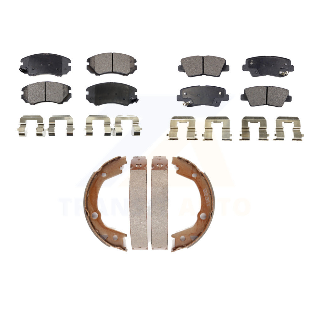 Front Rear Semi-Metallic Brake Pads Parking Shoes Kit For Hyundai Sonata Elantra