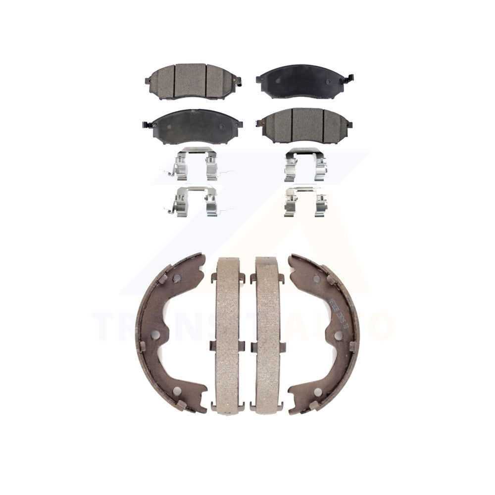 Front Rear Semi-Metallic Brake Pads & Parking Shoe Kit For INFINITI G37 G35