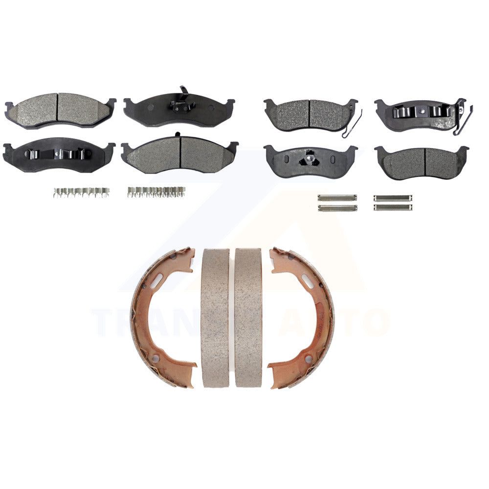 Front Rear Semi-Metallic Brake Pads And Parking Shoes Kit For Jeep Wrangler TJ