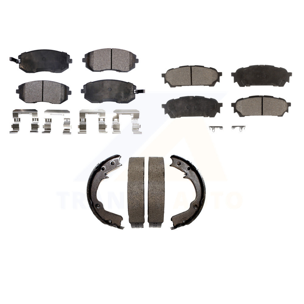 Front Rear Semi-Metallic Brake Pads Parking Shoe Kit For Subaru Forester Impreza