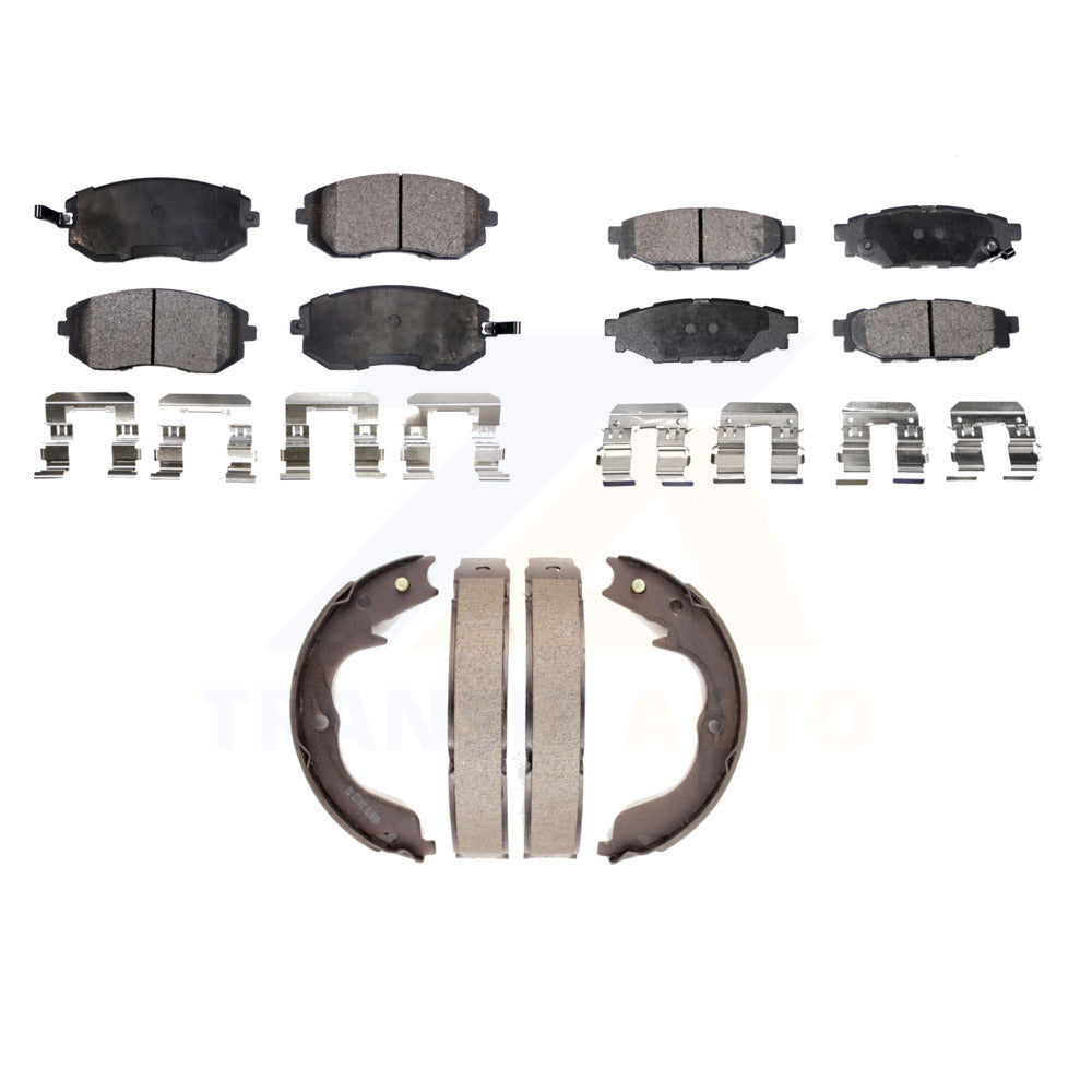 Front Rear Semi-Metallic Brake Pads Parking Shoe Kit For Subaru Outback Forester