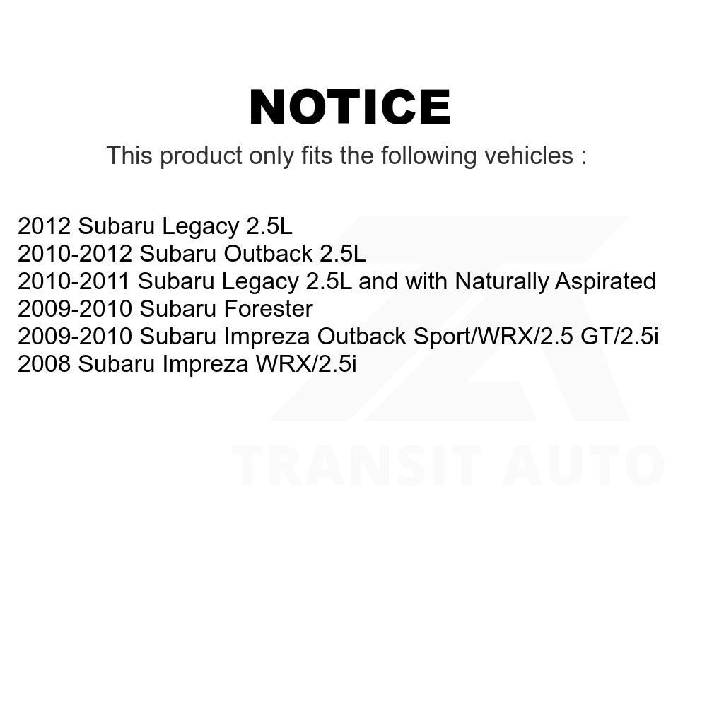 2008 2009 2010 2011 2012 Subaru Forester Impreza Legacy Outback 2.5L Naturally Aspirated Outback Sport WRX 2.5 GT 2.5i