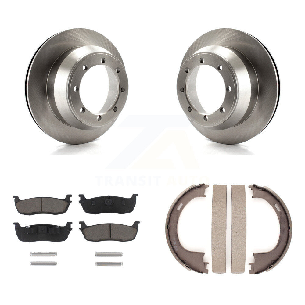 Rear Disc Rotors Ceramic Pads Parking Shoes Kit For Ford F-150 With 8 Lug Wheels