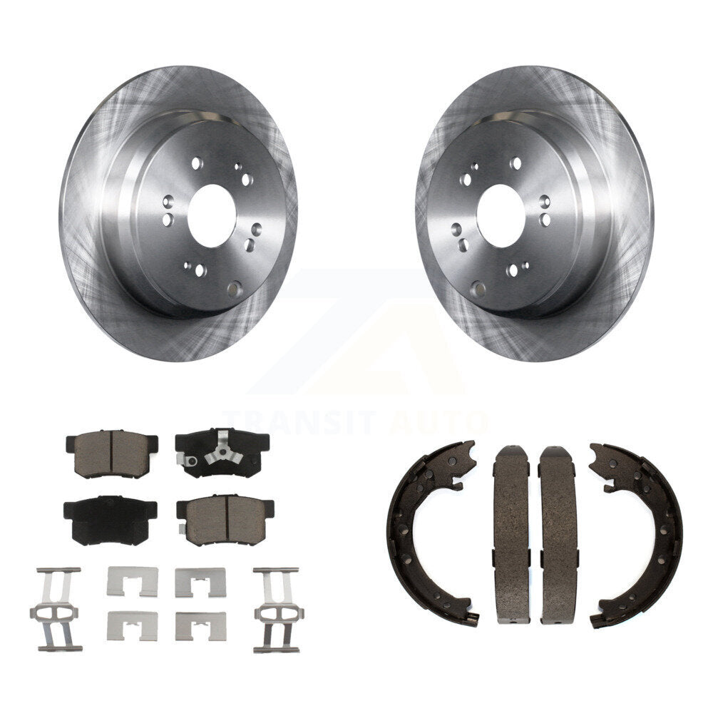 Rear Disc Rotors Ceramic Pads & Parking Brake Shoes Kit For 2005-2006 Honda CR-V