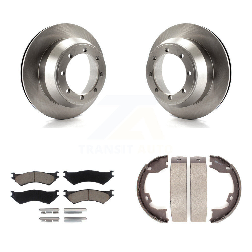 Rear Disc Rotors Ceramic Pads Parking Brake Shoes Kit For Ford E-350 Super Duty