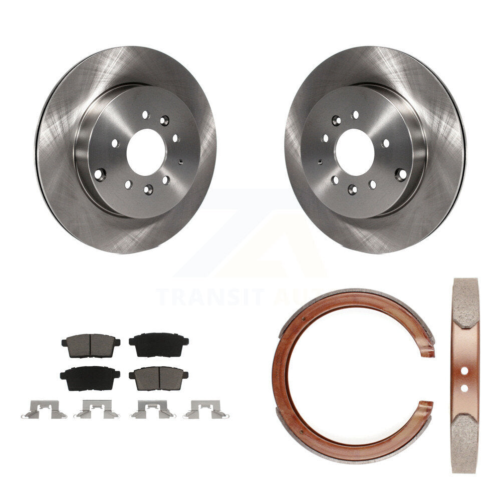 Rear Disc Rotors Ceramic Pads & Parking Brake Shoes Kit For 2007-2012 Mazda CX-9