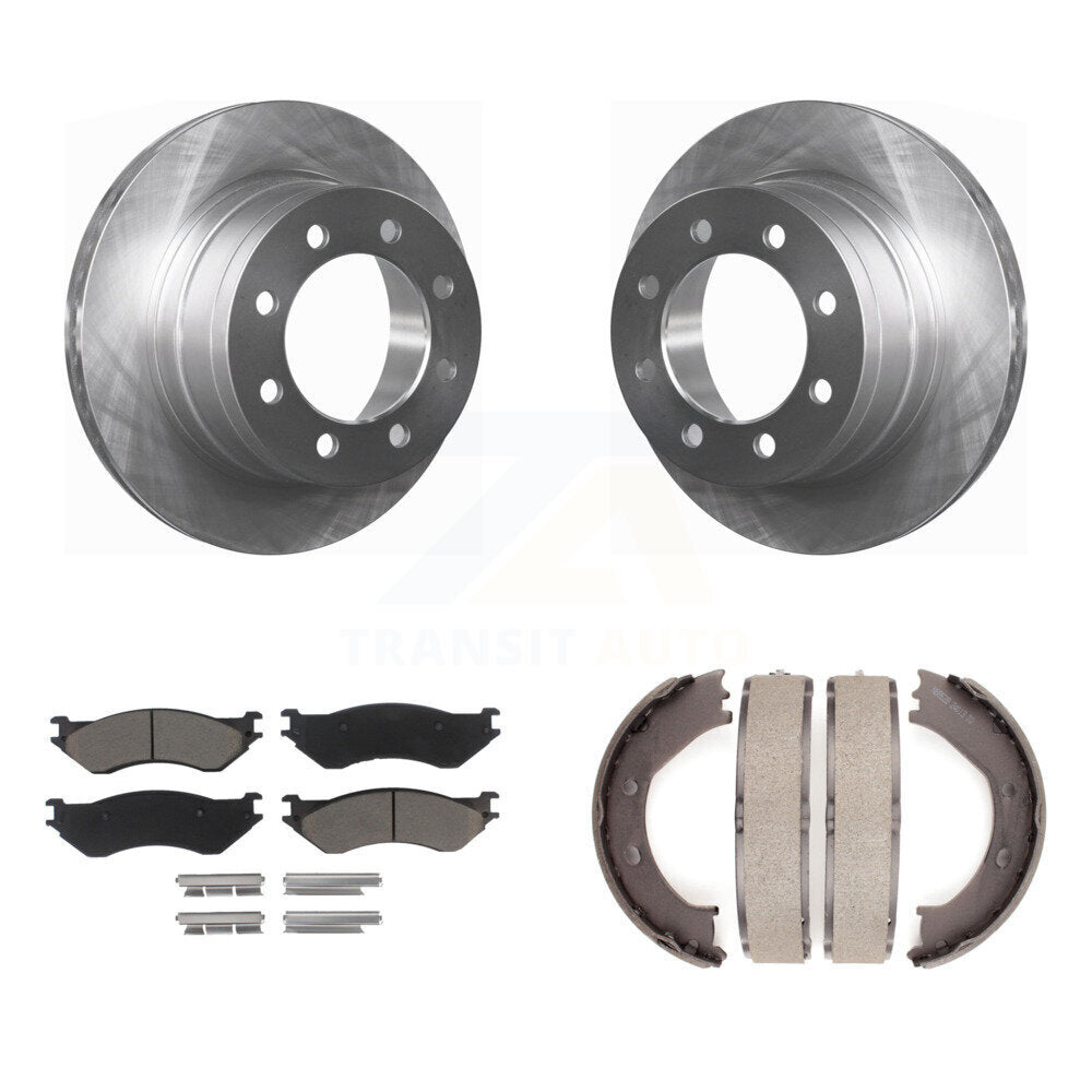 Rear Disc Rotors Ceramic Pads And Parking Brake Shoes Kit For Dodge Ram 1500