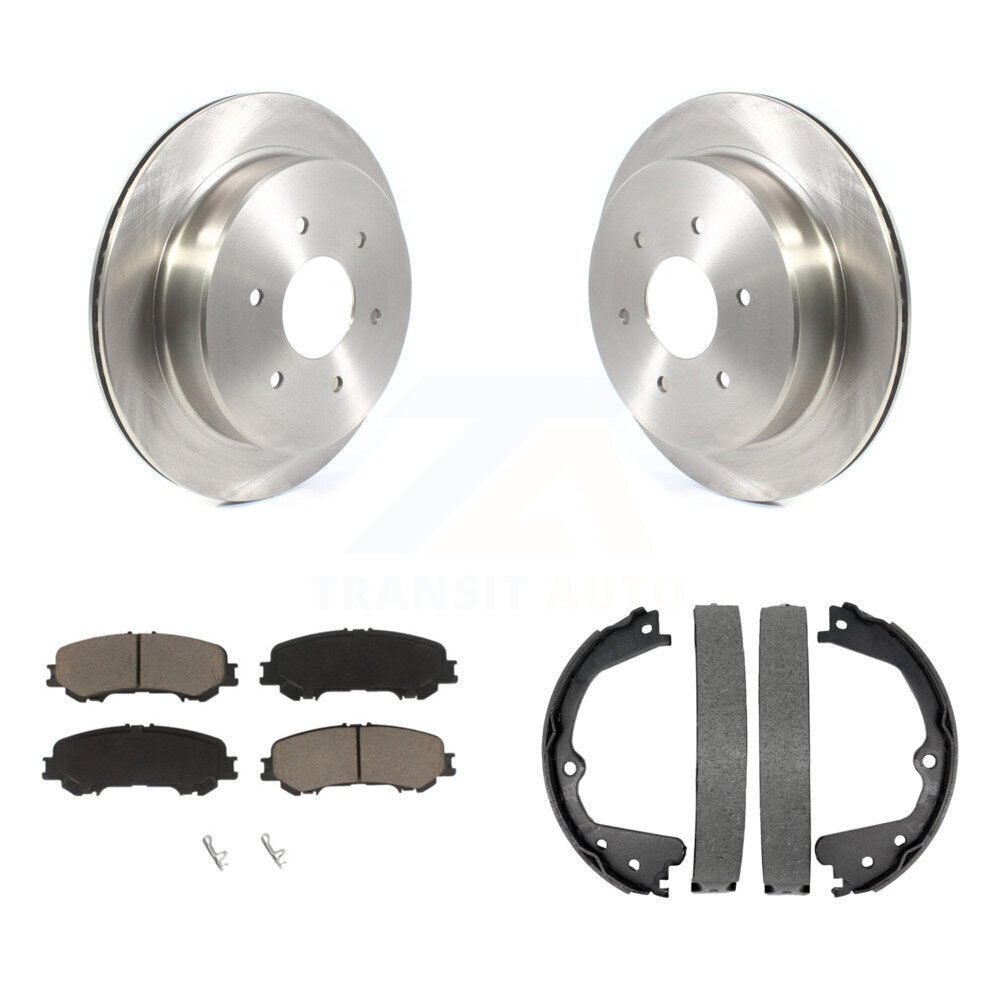 Rear Disc Rotors Ceramic Pads Parking Brake Shoes Kit For 2017-2023 Nissan TITAN