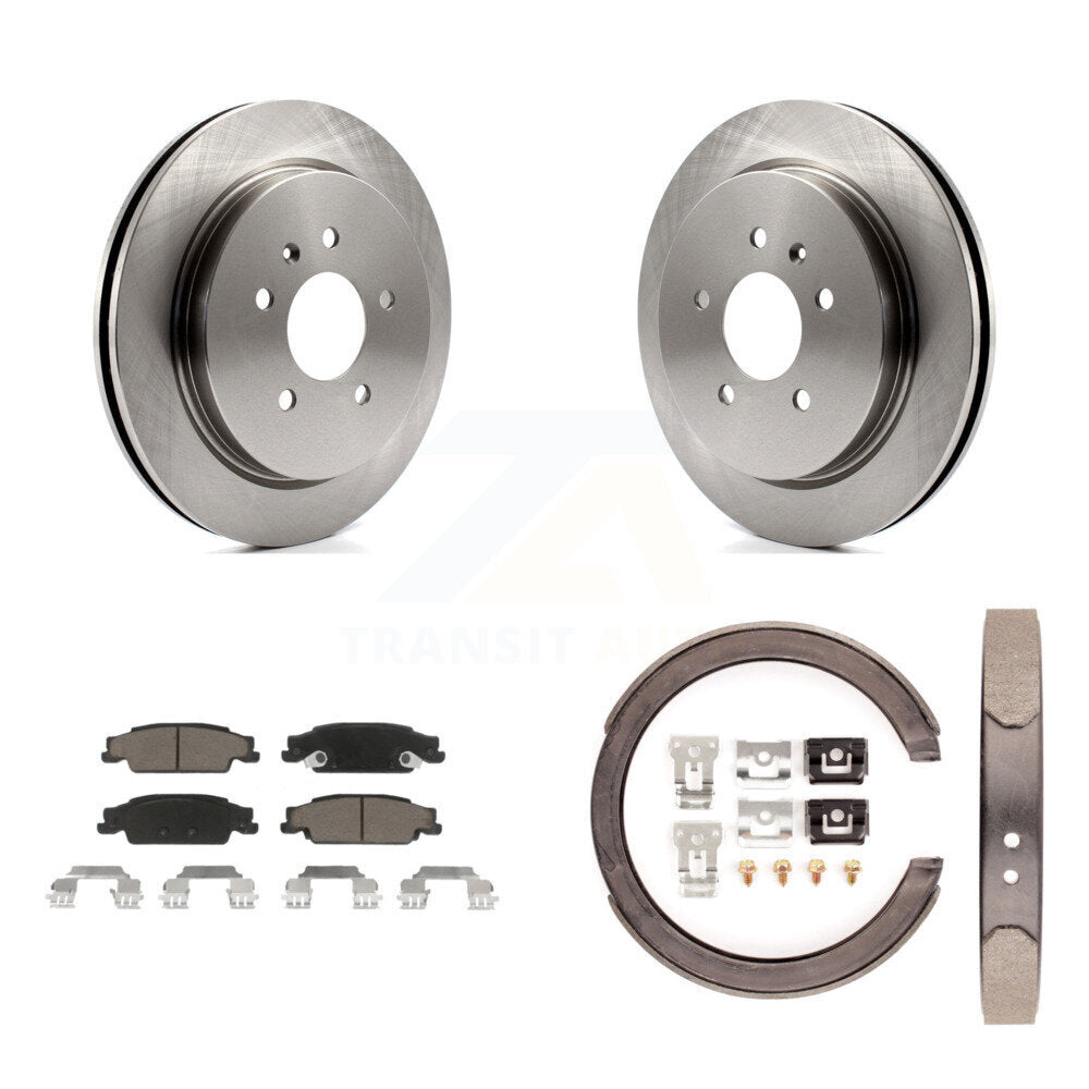 Rear Disc Rotors Ceramic Pads And Parking Brake Shoes Kit For Cadillac CTS STS