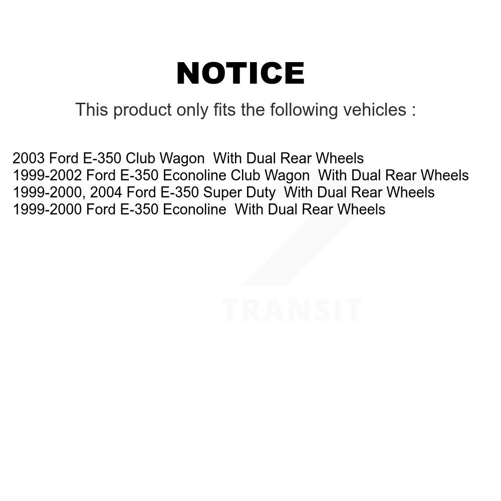 | 2003 | Ford | E-350 Club Wagon | All | With Dual Rear Wheels | All | All | All | All |