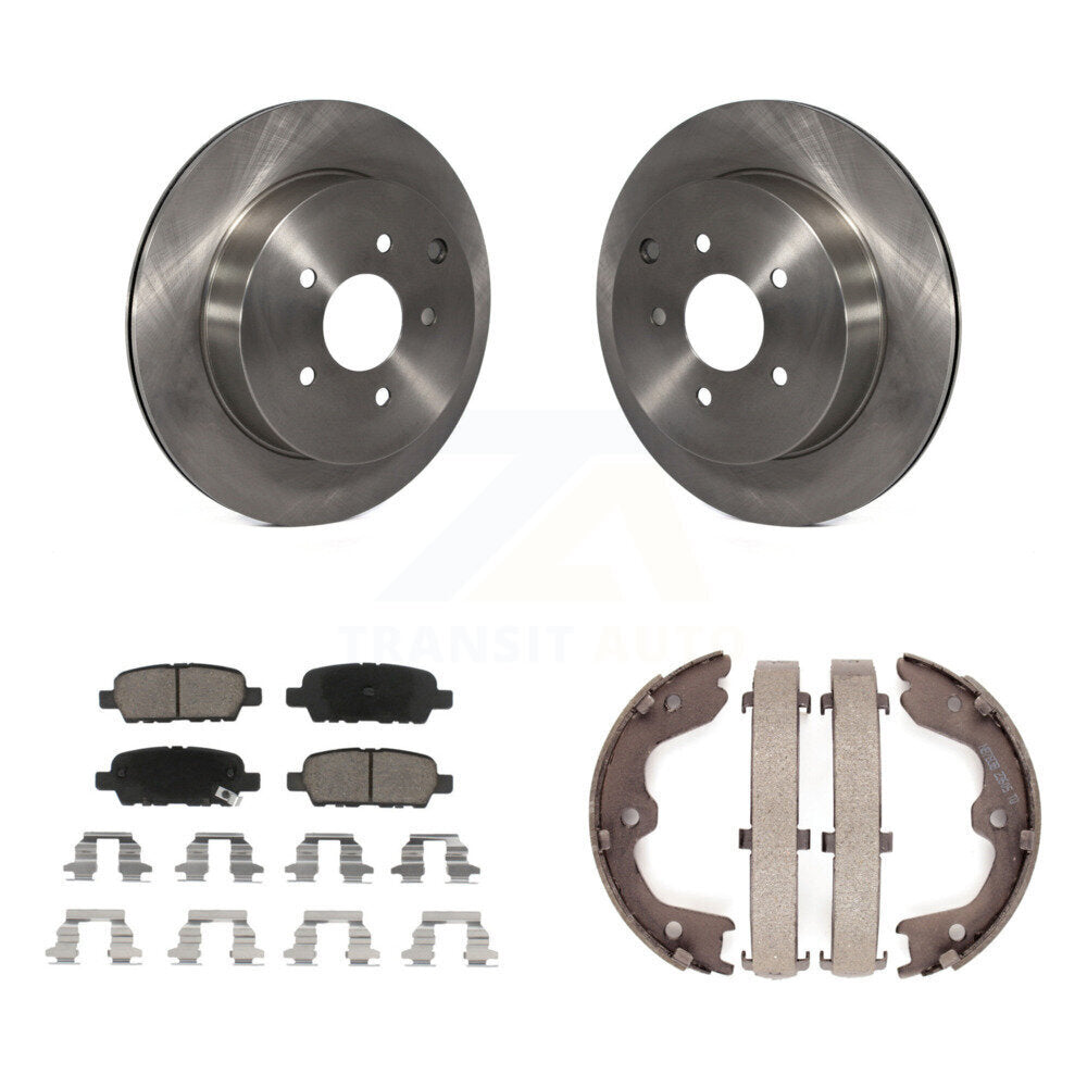 Rear Disc Rotors Ceramic Pads Parking Brake Shoes Kit For INFINITI FX35 FX45 Q60