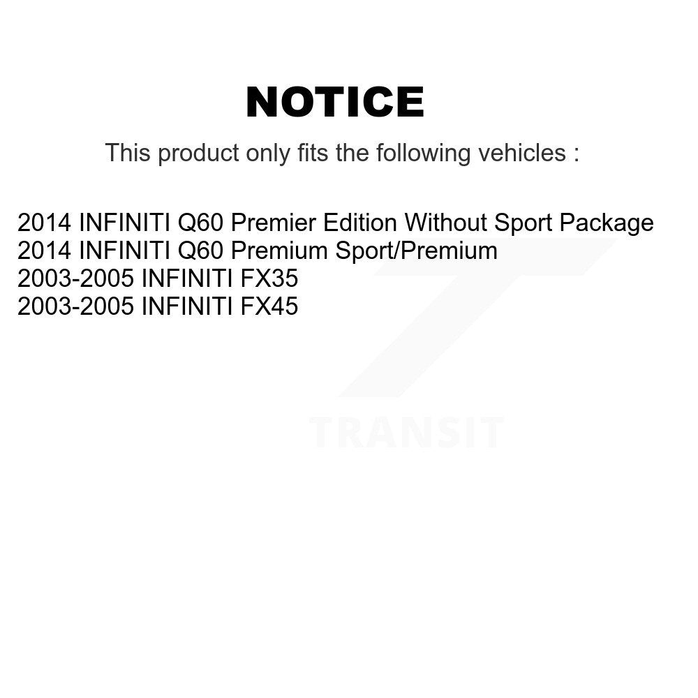 | 2014 | INFINITI | Q60 | Premier Edition | Without Sport Package | All | All | All | All |