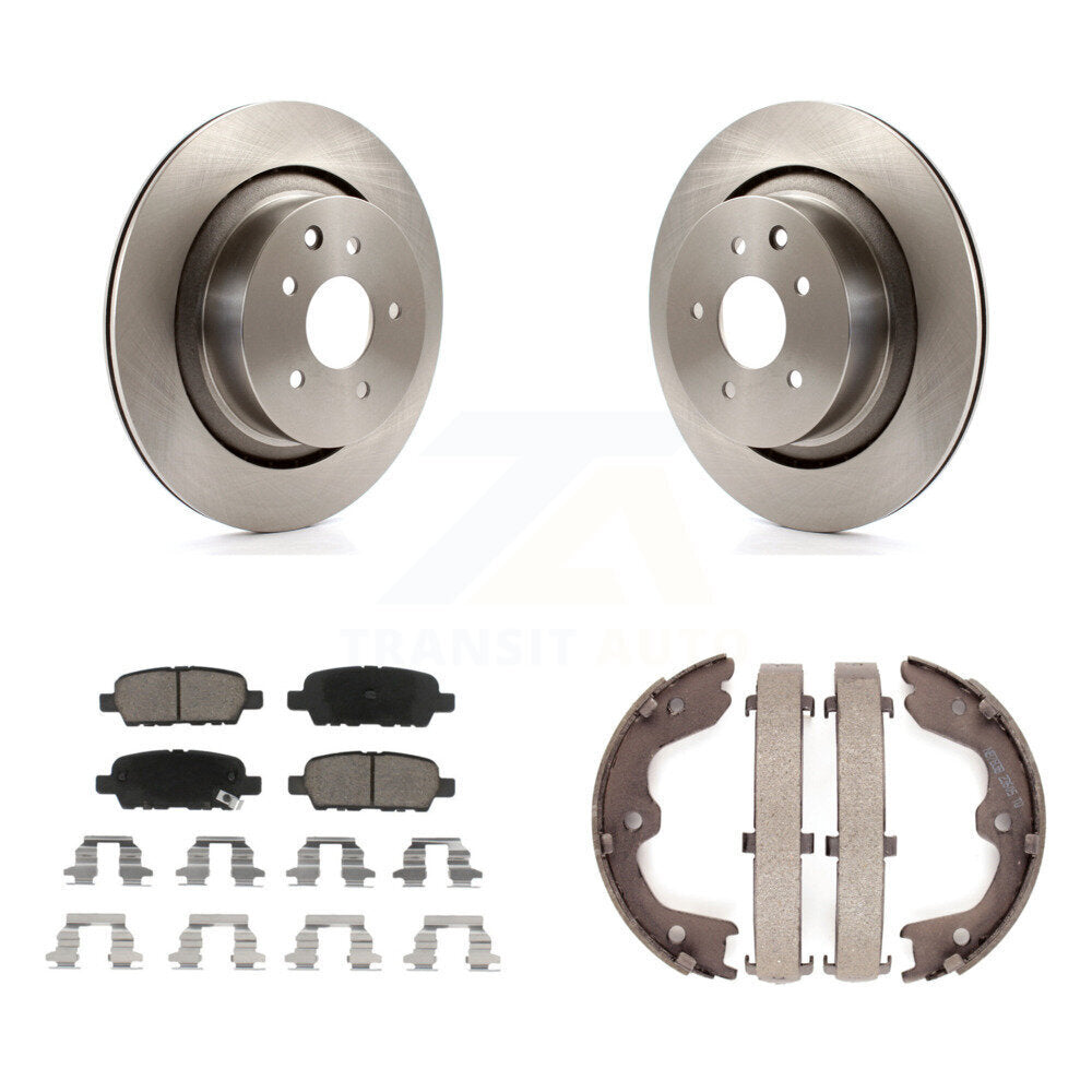 Rear Disc Rotors Ceramic Pads & Parking Brake Shoes Kit For INFINITI G37 G35 Q60