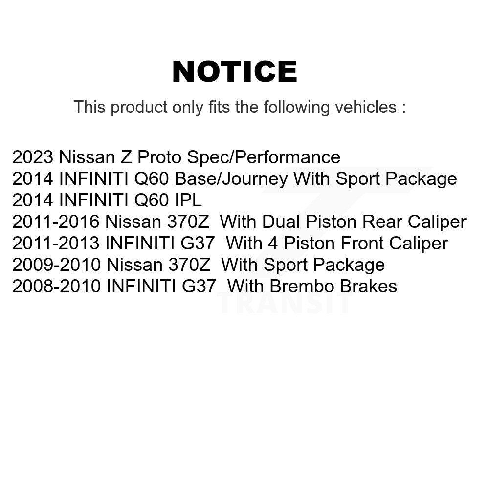 | 2012 | Nissan | 370Z | All | With Dual Piston Rear Caliper | All | All | All | All |