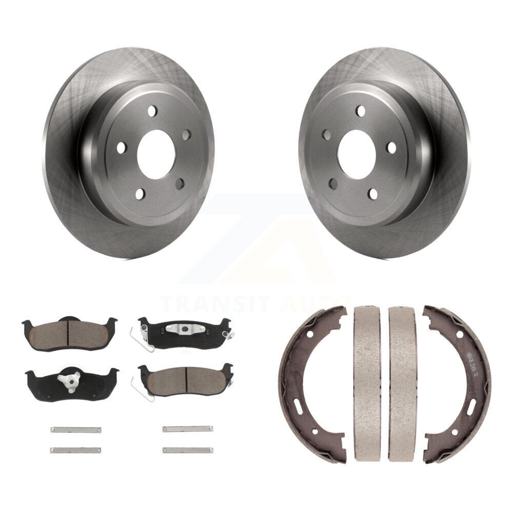 Rear Disc Rotors Ceramic Pads & Parking Brake Shoes Kit For Jeep Grand Cherokee