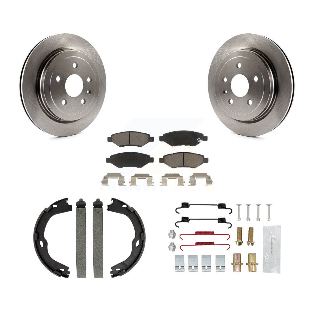 Rear Disc Rotors Ceramic Pads Parking Brake Shoes Hardware Kit For Cadillac CTS