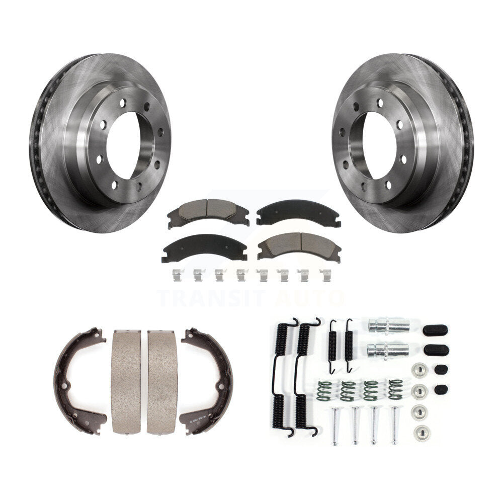 Rear Disc Rotors Ceramic Pads Parking Shoes & Hardware Kit For Ford E-350 Super