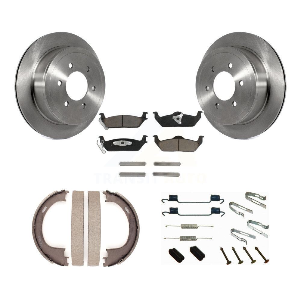 Rear Disc Rotors Ceramic Pads Parking Shoes Hardware Kit For Ford F-150 Lincoln
