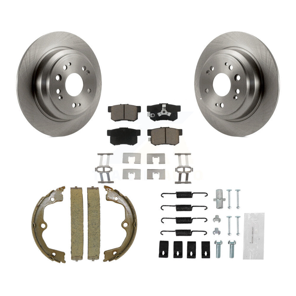 Rear Disc Rotors Ceramic Pads Parking Brake Shoes Hardware Kit For Honda Accord